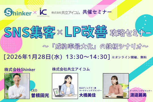 株式会社Shinker様共催【1/28開催】SNS集客 × LP改善 攻略セミナー 〜プロ2社が教える「成約率最大化」の鉄板シナリオ〜
